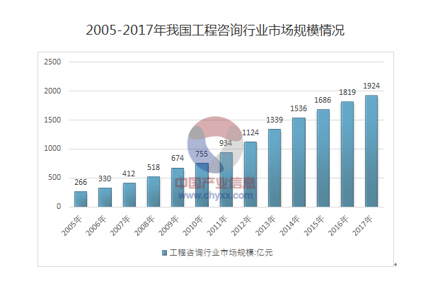 根據(jù)以往經(jīng)驗(yàn)假定,國(guó)家每投入1萬(wàn)億元固定資產(chǎn)投資就需要投資30億元的工程咨詢支出, 2017年我國(guó)工程咨詢行業(yè)的市場(chǎng)需求規(guī)模達(dá)到1924億元。
